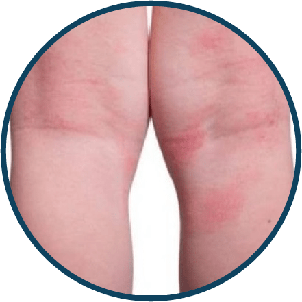 - Eczemas pruriginosos nas dobras dos braços, joelhos e outros locais do corpo